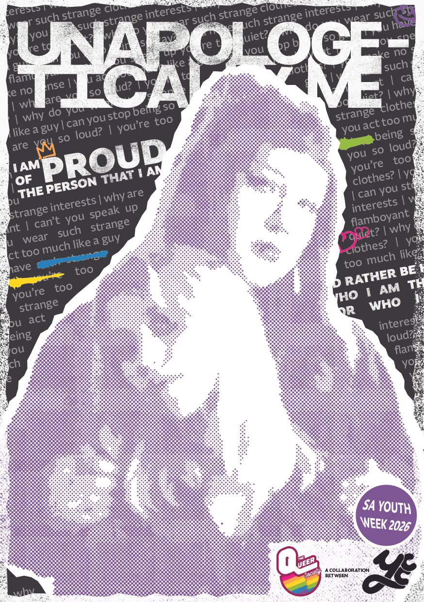 For SA Youth Week this year, we’re back at it again with another zine, this time in partnership with the City of Marion’s YCC! Our theme this year is “Unapologetically Me”. We’re looking for art that shows how you are unapologetically you in any art form - drawings, paintings, sculptures, digital art, collage, music, poetry, etc. As this zine is for SA Youth Week, you must be under 25 to enter.
